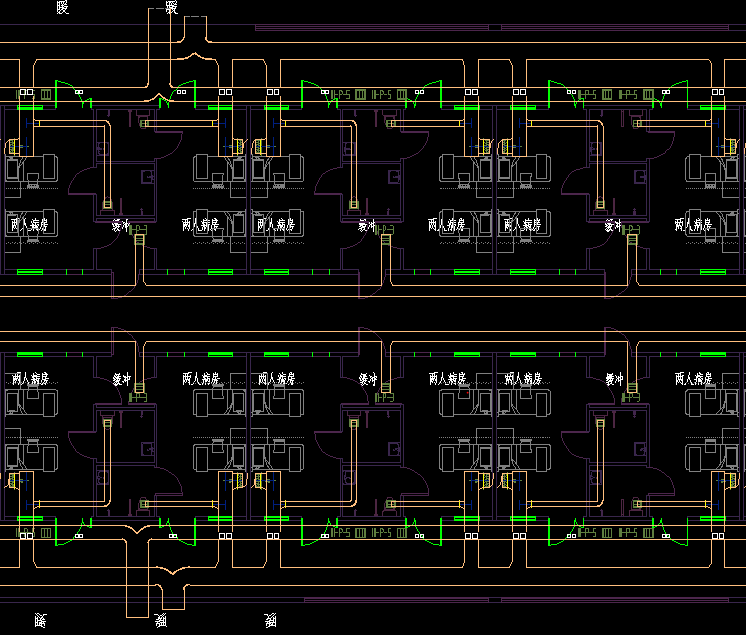 2、 医护区可分洁净区(含中央洁净通道及其相连通的洁净房间)和半污染区(通向隔离病房的走道及连通的房间),保证气流从清洁区→半污染区流动。